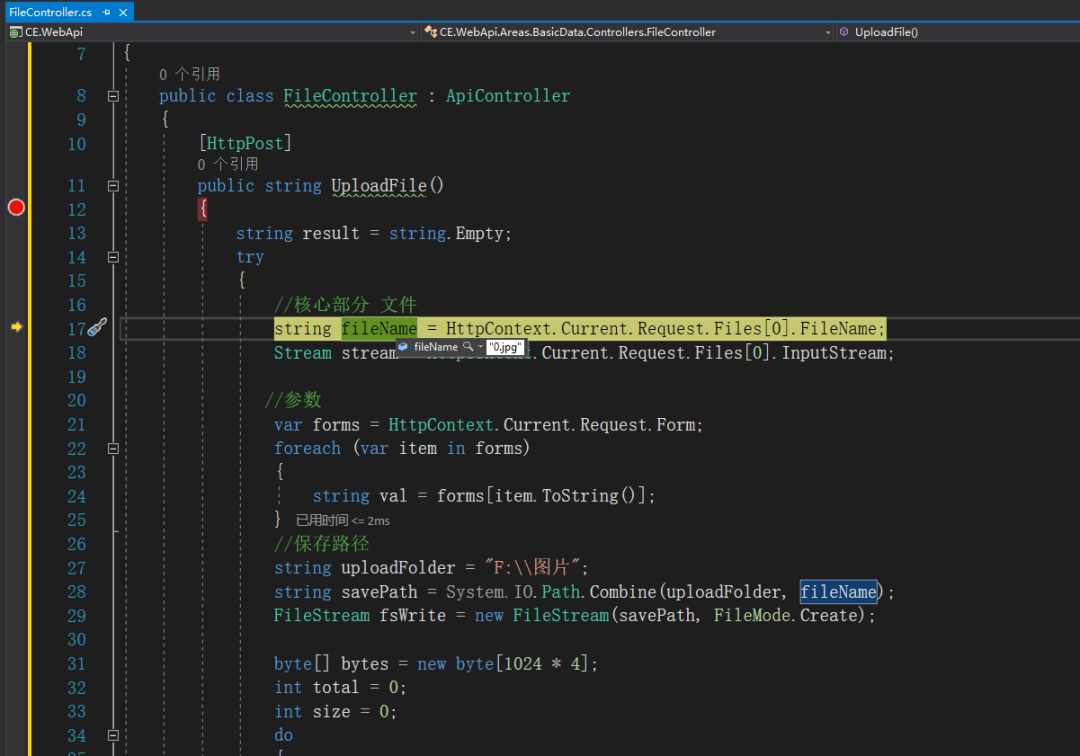 一、效果展示postman測(cè)試服務(wù)端接收上傳成功二、服務(wù)端代碼引用usingSystem;usingSystem.IO;usingSystem.Web;usingSystem.Web.Http;WebApi接口namespaceMes.Controllers//保存路徑stringuploadFolder=F:\\圖片...