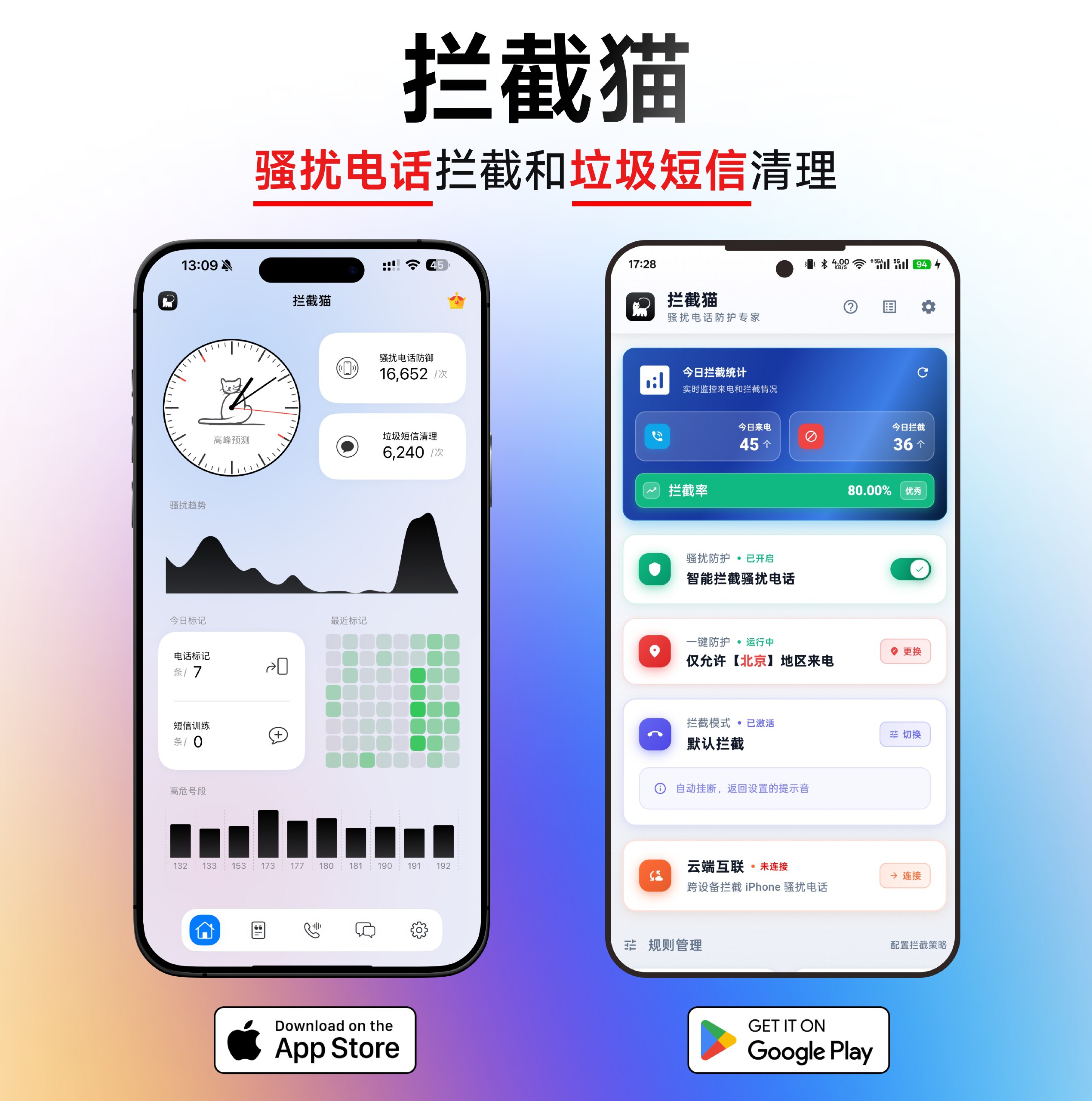 攔截貓:騷擾電話攔截與垃圾短信清理,上億號(hào)碼庫(kù)守護(hù)個(gè)人財(cái)產(chǎn)安全手機(jī)APP