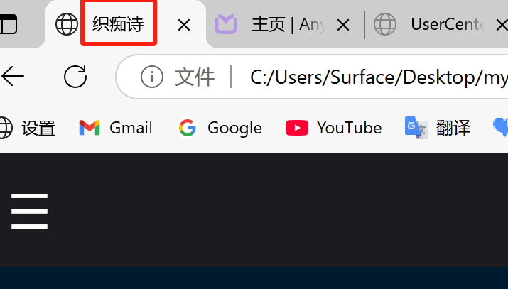 自動完成以上代碼后,你只需要根據(jù)自身的個性化需求,做些簡單修改即可。比如,除了網(wǎng)站語言以外,我們還經(jīng)常要修改的地方,就是標(biāo)題了這個titile,是顯示在瀏覽器標(biāo)簽的網(wǎng)站名稱如果你想看下自己所寫代碼實際的效果,,可以先在vscode界面ctrl+s進行保存;然后回到桌面打開對應(yīng)文件夾,對著HTML網(wǎng)頁左鍵雙擊,