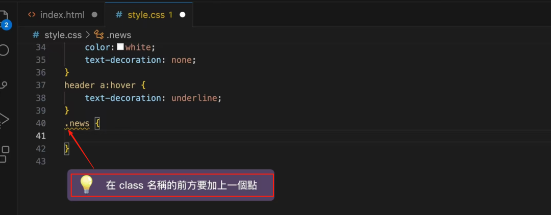 在html中命名好后,就可以在CSS樣式表內(nèi)針對(duì)該class寫它專用的CSS語法(即只針對(duì)這一class的美化)