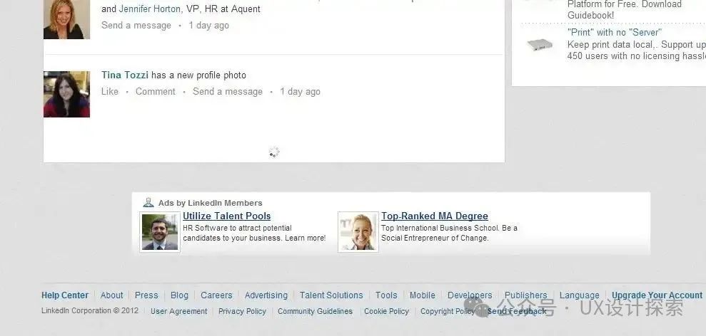 缺點4:缺少頁腳頁腳的存在是有原因的:它們包含用戶有時需要的內(nèi)容——如果用戶找不到某些內(nèi)容,或者想跳轉(zhuǎn)到其他頁面,他們通常會跳轉(zhuǎn)到其他頁面。但由于 feed 會無限滾動,用戶一到達頁面底部就會加載更多數(shù)據(jù),導(dǎo)致頁腳每次都超出視野范圍。