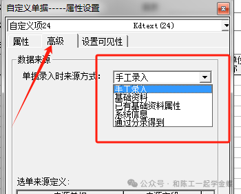 2 高級(jí): 主要是設(shè)置數(shù)據(jù)來源和選單