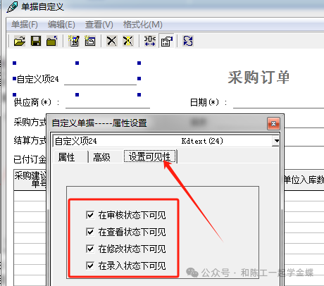 3 設(shè)置可見性: 主要是針對(duì)單據(jù)在某種狀態(tài)下
