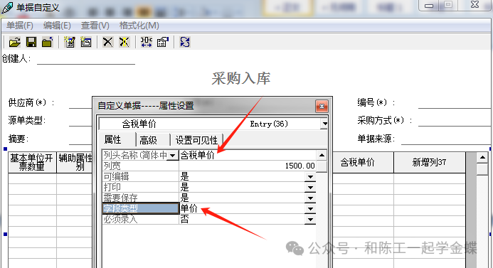 上面講了那么多,大家應(yīng)該基本上熟悉了吧,那現(xiàn)在舉幾個(gè)簡(jiǎn)單的例子 舉個(gè)簡(jiǎn)單的例子:有些客戶需要在采購(gòu)入庫(kù)單上體現(xiàn)含稅單價(jià)和含稅金額 那我們可以在采購(gòu)入庫(kù)單上做兩個(gè)自定義字段,一個(gè)是含稅單價(jià),另一個(gè)是含稅金額 含稅單價(jià):增加分錄列,名稱填含稅單價(jià),字段類型選擇單價(jià),錄入來源選擇手工錄入,選單來源選擇采購(gòu)訂單上的含稅單價(jià)