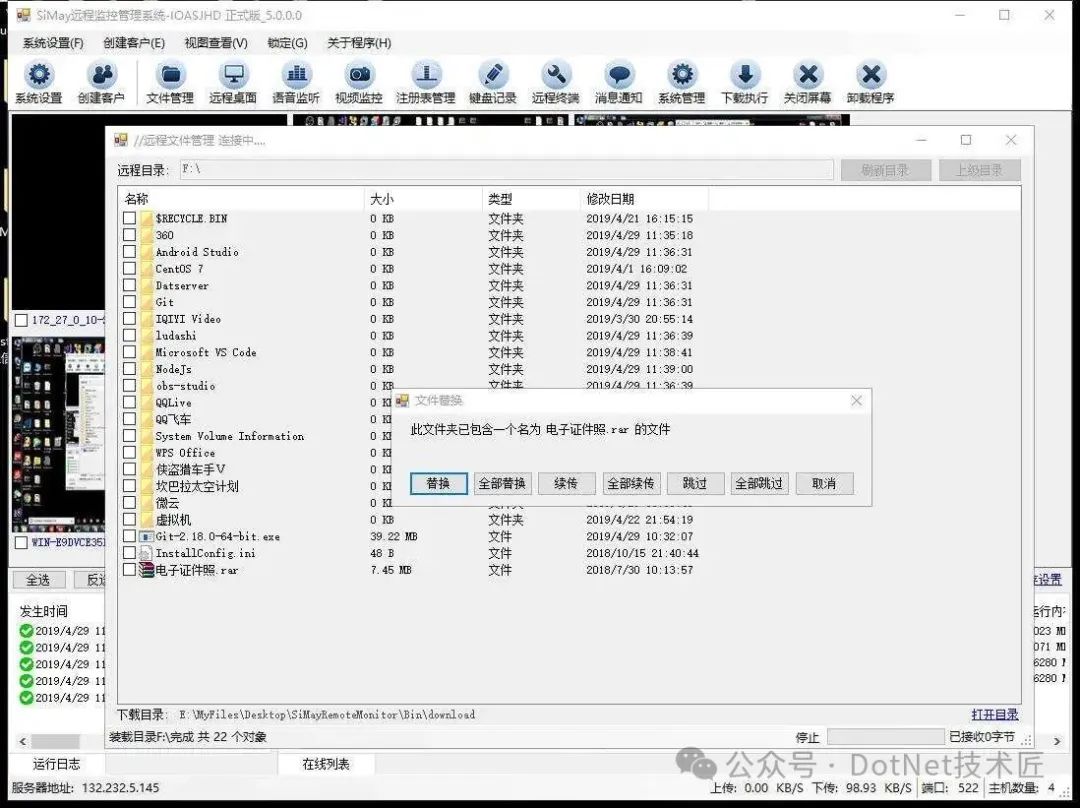 項(xiàng)目結(jié)構(gòu)系統(tǒng)項(xiàng)目結(jié)構(gòu) 項(xiàng)目技術(shù)1、組件式系統(tǒng)架構(gòu)設(shè)計(jì) 2、遠(yuǎn)程同步調(diào)用 3、實(shí)體消息傳輸協(xié)議 4、應(yīng)用多連接會(huì)話支持 5、可視區(qū)域逐行掃描算法的遠(yuǎn)程桌面 6、中間會(huì)話服務(wù)轉(zhuǎn)發(fā),支持多個(gè)主控端同時(shí)實(shí)時(shí)監(jiān)控 7、HOOK技術(shù) 8、WebSocket Web端監(jiān)控 9、IOCP異步Socket高性能通信模型 10、基于Windows WaInXX系列實(shí)現(xiàn)的語(yǔ)音通訊 11、基于Dx組件捕獲攝像頭 項(xiàng)目效果在局域網(wǎng)測(cè)試環(huán)境中,系統(tǒng)可穩(wěn)定承載1000+并發(fā)連接,遠(yuǎn)程桌面延遲控制在50ms以內(nèi)。 廣域網(wǎng)部署時(shí),通過中間會(huì)話服務(wù)器轉(zhuǎn)發(fā)數(shù)據(jù),主控端響應(yīng)時(shí)間增加約30%,但仍滿足實(shí)時(shí)監(jiān)控需求。 企業(yè)定制版文件分發(fā)功能在100Mbps帶寬下,可實(shí)現(xiàn)每秒50MB的傳輸速率。 ![]() Gitee:https://gitee.com/dotnetchina/SiMayRemoteMonitorOS SiMay遠(yuǎn)程控制管理系統(tǒng)通過IOCP通信模型、組件化架構(gòu)和跨平臺(tái)設(shè)計(jì),為遠(yuǎn)程協(xié)作場(chǎng)景提供了高效、安全的解決方案。 其開源特性降低了技術(shù)門檻,而企業(yè)定制功能則滿足了商業(yè)化需求。未來(lái),系統(tǒng)計(jì)劃引入AI異常檢測(cè)和區(qū)塊鏈身份認(rèn)證等創(chuàng)新模塊,進(jìn)一步拓展應(yīng)用邊界。 #遠(yuǎn)程控制、#IOCP、#中間會(huì)話服務(wù)器、#組件化架構(gòu)、#Web監(jiān)控、#二進(jìn)制序列化、#UAC捕獲、#企業(yè)定制、#開源項(xiàng)目、SiMay、#中間會(huì)話、#逐行掃描、#WebSocket、#C#、#Windows 閱讀原文:原文鏈接 該文章在 2025/7/22 17:21:57 編輯過 |