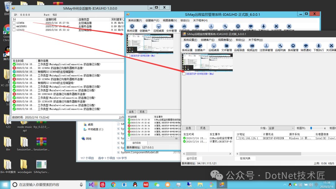 前言遠(yuǎn)程控制技術(shù)已成為企業(yè)運(yùn)維、教育協(xié)作和IT支持的核心工具。SiMay遠(yuǎn)程控制管理系統(tǒng)作為一款開源的Windows遠(yuǎn)程控制解決方案,憑借其高性能通信架構(gòu)、多平臺(tái)兼容性和豐富的功能模塊,為大家提供了可擴(kuò)展的技術(shù)框架。 本文將從系統(tǒng)架構(gòu)、功能實(shí)現(xiàn)、技術(shù)亮點(diǎn)及部署實(shí)踐等維度,全面解析該系統(tǒng)的設(shè)計(jì)理念與工程價(jià)值。 項(xiàng)目介紹系統(tǒng)采用分層架構(gòu)設(shè)計(jì),底層基于IOCP(Input/Output Completion Port)異步通信模型,支持海量客戶端的實(shí)時(shí)監(jiān)控與數(shù)據(jù)傳輸。 系統(tǒng)分為五大核心模塊: 1、主控端提供圖形化界面,支持Windows及Web雙平臺(tái)操作; 2、被控服務(wù)端支持綠色啟動(dòng)(免安裝)和系統(tǒng)服務(wù)模式部署; 3、中間會(huì)話服務(wù)器實(shí)現(xiàn)多主控端協(xié)同監(jiān)控同一被控端; 4、通信層采用輕量級(jí)二進(jìn)制序列化協(xié)議,優(yōu)化帶寬占用; 5、平臺(tái)適配層針對(duì)Windows系統(tǒng)深度優(yōu)化,兼容UAC、WinLogon等特殊桌面環(huán)境。 系統(tǒng)已實(shí)現(xiàn)的功能包括遠(yuǎn)程桌面協(xié)助、文件管理、語(yǔ)音/攝像頭監(jiān)控、注冊(cè)表編輯、命令行終端、進(jìn)程管理等,并支持企業(yè)級(jí)功能定制(如文件分發(fā)、屏幕廣播)。 項(xiàng)目功能遠(yuǎn)程桌面協(xié)助基于可視區(qū)域逐行掃描算法,綜合性能提升50%,帶寬占用降低30%; 多維度監(jiān)控實(shí)時(shí)獲取被控端攝像頭畫面、系統(tǒng)進(jìn)程列表及注冊(cè)表數(shù)據(jù); 跨平臺(tái)協(xié)作通過中間會(huì)話服務(wù)器,支持Web端、Windows端等多主控同時(shí)監(jiān)控; 安全通信采用AccessKey認(rèn)證機(jī)制,確保會(huì)話數(shù)據(jù)加密傳輸; 靈活部署被控端支持內(nèi)存加載(Loader模式)和系統(tǒng)服務(wù)安裝兩種方式。 項(xiàng)目特點(diǎn)