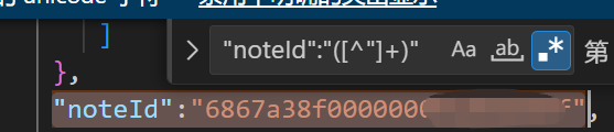 一個大的 json 文件,找到所有 noteId 對應(yīng)的值的所有行"noteId":"68385178000000002102d**"