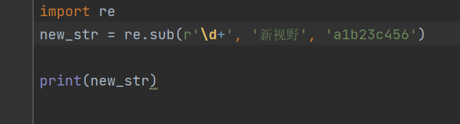 new_str = re.sub(r'\d+', '新視野', 'a1b23c456')print(new_str)