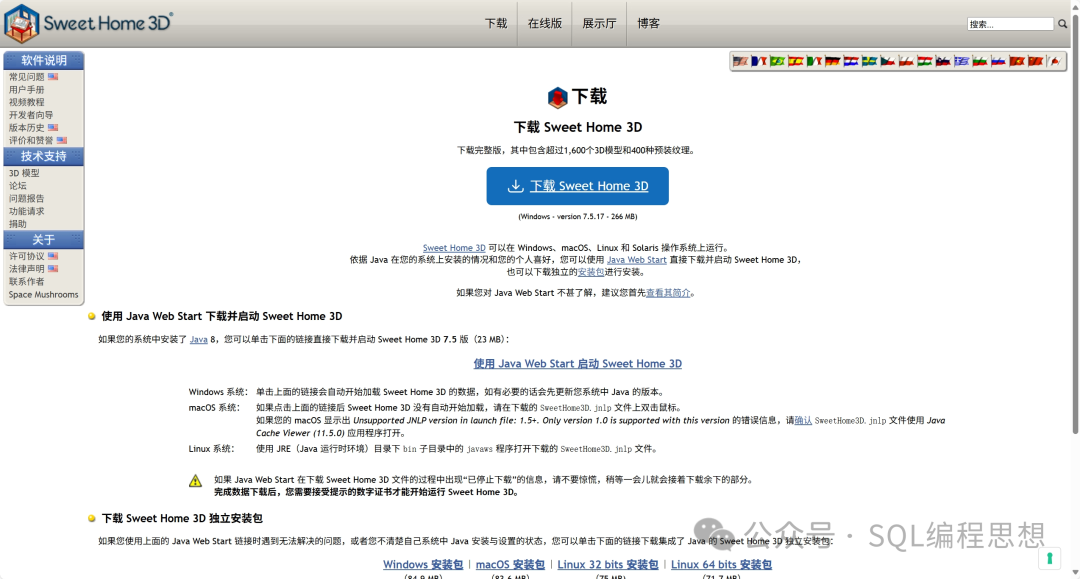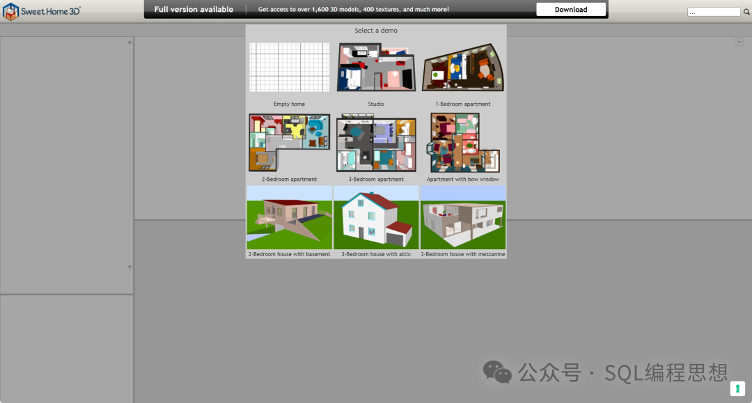 ![]() 在線版本Sweet Home 3D 在線管理器可以直接在瀏覽器中創(chuàng)建房屋平面圖,地址如下: https://www.sweethome3d.com/SweetHome3DJSOnline.jsp?lang=cn? ![]() 新建一個家庭設(shè)計或者打開一個演示示例: ![]() 下載安裝推薦直接通過官方網(wǎng)站下載 Sweet Home 3D: https://www.sweethome3d.com/zh-cn/download.jsp ![]()