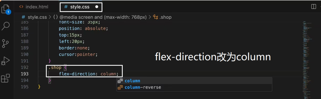 所以我們需要改變布局方式,通常從左右并排變?yōu)樯舷露询B(垂直排列)。修改的方式也很簡單,回到CSS樣式表,把flex的排列方式改成縱向的column