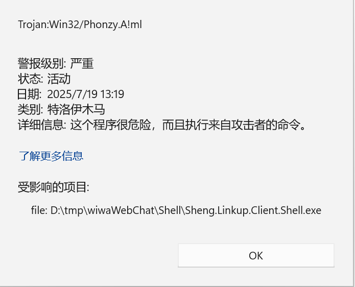 在這期間,一直有一個問題困擾著我,就是客服端軟件經(jīng)常被各種殺毒軟件,包括 Windows Defender 誤報木馬。在早期,用戶主要來自技術社區(qū)和朋友們的推薦,用戶信任度較高,經(jīng)過解釋說明,用戶能夠信任客服軟件是安全的。