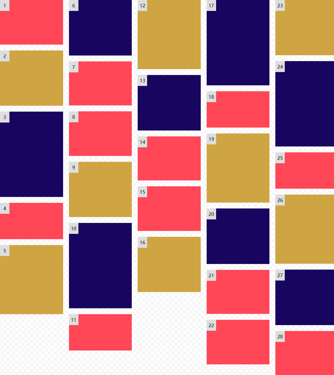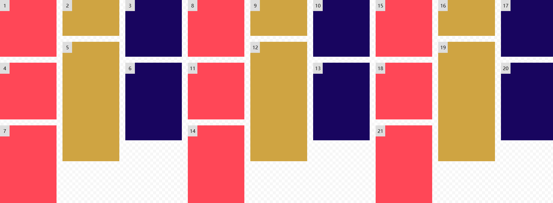 雖說(shuō) grid 也能做出瀑布流效果,不過(guò)需要指定每個(gè)網(wǎng)格單元的占用大小。