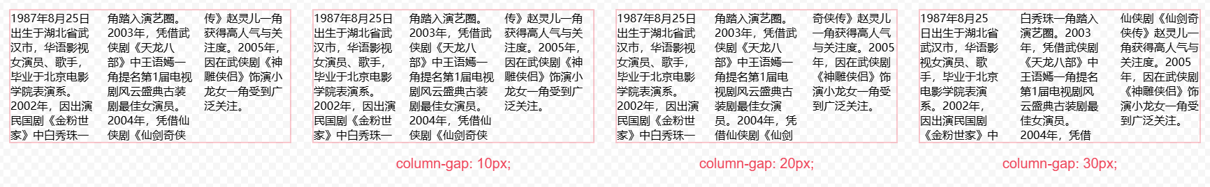 column-gap 設(shè)置列間隔。默認(rèn)值 normal 表示列間距占用 1em 寬度。
