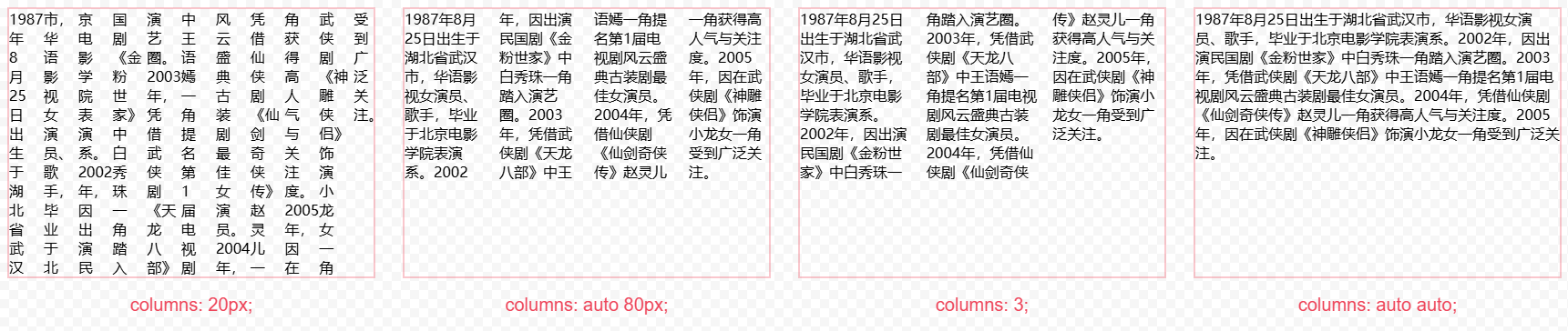 在多列布局方面 column 屬性相比于 flex 和 grid 而言,顯得更有優(yōu)勢(shì)。