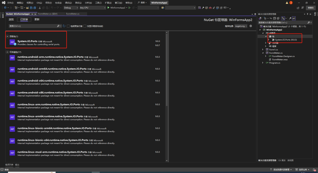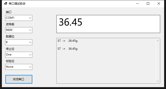 對(duì)接效果測試工具電子秤對(duì)接文檔二、VS2022界面設(shè)計(jì)安裝System.IO.Ports解析數(shù)據(jù)引用using System.IO.Ports;代碼namespace WinFormsApp2{ public partial class FormMeter : Form { private SerialPort serialPort = new SerialPort(); public FormMeter() { InitializeComponent(); InitializeSettings(); this.FormClosing += MainForm_FormClosing; } private void InitializeSettings() { // 初始化默認(rèn)值 cmbBaudRate.SelectedIndex = 0; cmbDataBits.SelectedIndex = 3; cmbStopBits.SelectedIndex = 0; cmbParity.SelectedIndex = 0; RefreshPortList(); } //刷新串口 private void RefreshPortList() { cmbPort.Items.Clear(); string[] ports = SerialPort.GetPortNames(); cmbPort.Items.AddRange(ports); if (ports.Length > 0) cmbPort.SelectedIndex = 0; } //打開串口 private void btnOpen_Click(object sender, EventArgs e) { if (!serialPort.IsOpen) { try { serialPort.PortName = cmbPort.Text; serialPort.BaudRate = int.Parse(cmbBaudRate.Text); serialPort.DataBits = int.Parse(cmbDataBits.Text); serialPort.StopBits = (StopBits)Enum.Parse(typeof(StopBits), cmbStopBits.Text); serialPort.Parity = (Parity)Enum.Parse(typeof(Parity), cmbParity.Text); serialPort.Open(); btnOpen.Text = "關(guān)閉串口"; serialPort.DataReceived += SerialPort_DataReceived; } catch (Exception ex) { MessageBox.Show($"打開失敗: {ex.Message}"); } } else { serialPort.Close(); btnOpen.Text = "打開串口"; } } //關(guān)閉串口 private void btnSend_Click(object sender, EventArgs e) { if (serialPort.IsOpen && !string.IsNullOrEmpty(txtSend.Text)) { try { serialPort.WriteLine(txtSend.Text); txtReceived.AppendText($"[發(fā)送] {DateTime.Now:HH:mm:ss}: {txtSend.Text}\r\n"); txtSend.Clear(); } catch (Exception ex) { MessageBox.Show($"發(fā)送失敗: {ex.Message}"); } } } //接收事件 private void SerialPort_DataReceived(object sender, SerialDataReceivedEventArgs e) { string data = serialPort.ReadExisting(); this.BeginInvoke(new Action(() => { txtReceived.AppendText($"{data}\r\n"); txtReceived.ScrollToCaret(); //解析數(shù)據(jù) int SignStart = data.IndexOf(":");//標(biāo)識(shí)位 if (SignStart < 0) return; int NumberStart = 5;//起始位 int NumberBits = 5;//截取長度 string dataPart = data.Substring(SignStart + NumberStart, NumberBits); // 數(shù)據(jù)段 txtSend.Invoke(new Action(() => { txtSend.Text = dataPart; })); })); } //關(guān)閉窗口 private void MainForm_FormClosing(object sender, FormClosingEventArgs e) { if (serialPort.IsOpen) serialPort.Close(); } }}
