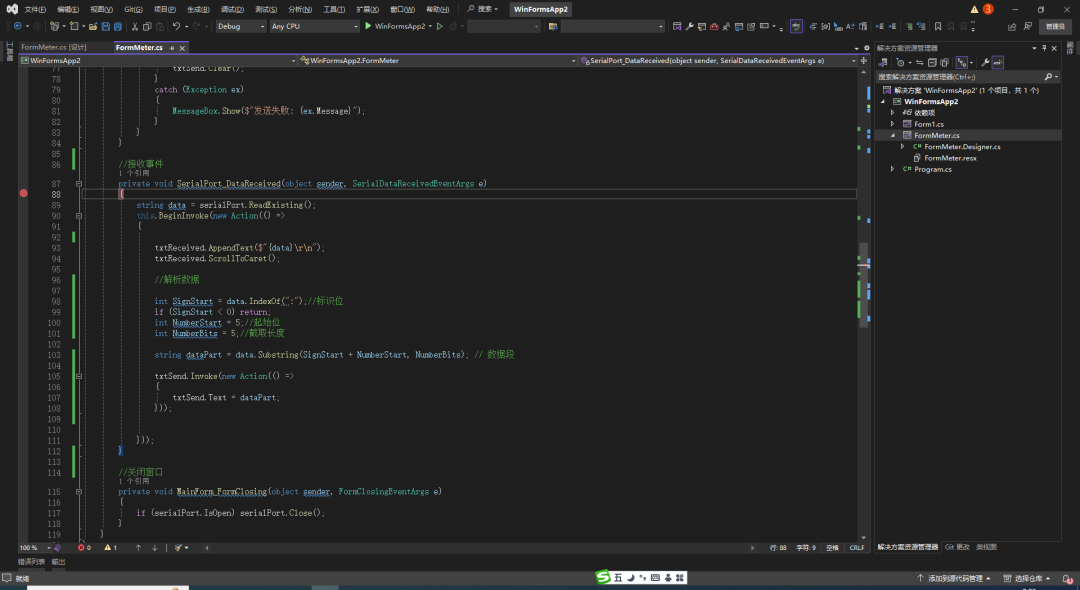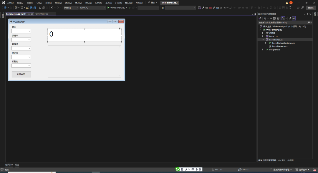 namespace WinFormsApp2{ public partial class FormMeter : Form { private SerialPort serialPort = new SerialPort(); public FormMeter() { InitializeComponent(); InitializeSettings(); this.FormClosing += MainForm_FormClosing; } private void InitializeSettings() { // 初始化默認(rèn)值 cmbBaudRate.SelectedIndex = 0; cmbDataBits.SelectedIndex = 3; cmbStopBits.SelectedIndex = 0; cmbParity.SelectedIndex = 0; RefreshPortList(); } //刷新串口 private void RefreshPortList() { cmbPort.Items.Clear(); string[] ports = SerialPort.GetPortNames(); cmbPort.Items.AddRange(ports); if (ports.Length > 0) cmbPort.SelectedIndex = 0; } //打開串口 private void btnOpen_Click(object sender, EventArgs e) { if (!serialPort.IsOpen) { try { serialPort.PortName = cmbPort.Text; serialPort.BaudRate = int.Parse(cmbBaudRate.Text); serialPort.DataBits = int.Parse(cmbDataBits.Text); serialPort.StopBits = (StopBits)Enum.Parse(typeof(StopBits), cmbStopBits.Text); serialPort.Parity = (Parity)Enum.Parse(typeof(Parity), cmbParity.Text); serialPort.Open(); btnOpen.Text = "關(guān)閉串口"; serialPort.DataReceived += SerialPort_DataReceived; } catch (Exception ex) { MessageBox.Show($"打開失敗: {ex.Message}"); } } else { serialPort.Close(); btnOpen.Text = "打開串口"; } } //關(guān)閉串口 private void btnSend_Click(object sender, EventArgs e) { if (serialPort.IsOpen && !string.IsNullOrEmpty(txtSend.Text)) { try { serialPort.WriteLine(txtSend.Text); txtReceived.AppendText($"[發(fā)送] {DateTime.Now:HH:mm:ss}: {txtSend.Text}\r\n"); txtSend.Clear(); } catch (Exception ex) { MessageBox.Show($"發(fā)送失敗: {ex.Message}"); } } } //接收事件 private void SerialPort_DataReceived(object sender, SerialDataReceivedEventArgs e) { string data = serialPort.ReadExisting(); this.BeginInvoke(new Action(() => { txtReceived.AppendText($"{data}\r\n"); txtReceived.ScrollToCaret(); //解析數(shù)據(jù) int SignStart = data.IndexOf(":");//標(biāo)識(shí)位 if (SignStart < 0) return; int NumberStart = 5;//起始位 int NumberBits = 5;//截取長度 string dataPart = data.Substring(SignStart + NumberStart, NumberBits); // 數(shù)據(jù)段 txtSend.Invoke(new Action(() => { txtSend.Text = dataPart; })); })); } //關(guān)閉窗口 private void MainForm_FormClosing(object sender, FormClosingEventArgs e) { if (serialPort.IsOpen) serialPort.Close(); } }}