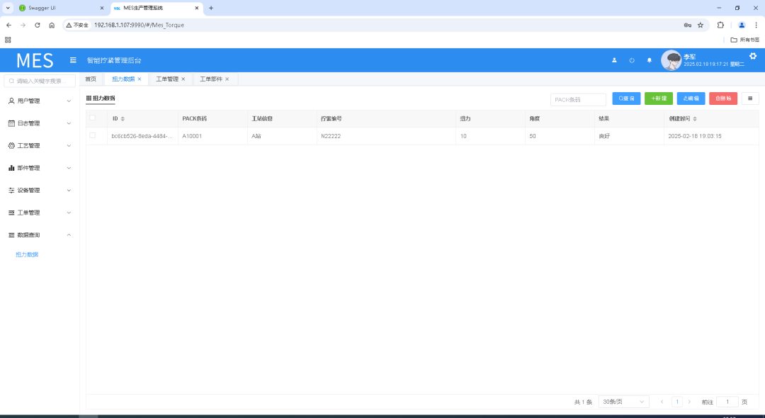 Mes_Device 設備表 Mes_Craft 工藝表 Mes_CraftStep 工藝步驟表 Mes_Component 部件表 Mes_Work 工單表 Mes_WorkComponent 工單部件表 Mes_Torque 扭力數(shù)據(jù)表 項目文件 ![]() 智能板手MES系統(tǒng)端模塊介紹: