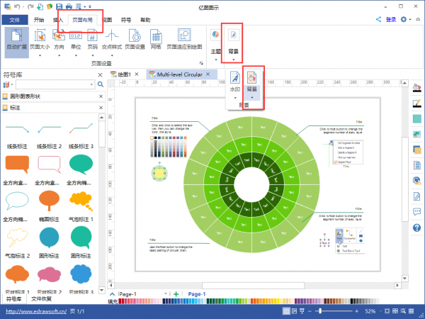 【使用軟件內(nèi)置例子新建繪圖頁面】: 第一步:如果選用的例子中添加了背景,需要先將背景去掉。(去除背景可通過:頁面布局——背景——清除背景,即可)