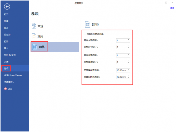 溫馨提示:點擊“頁面布局”下的“網(wǎng)格”,或者“文件”——“選項”中的“網(wǎng)格”,均可對網(wǎng)格格式進行自定義設置,如下圖所示。