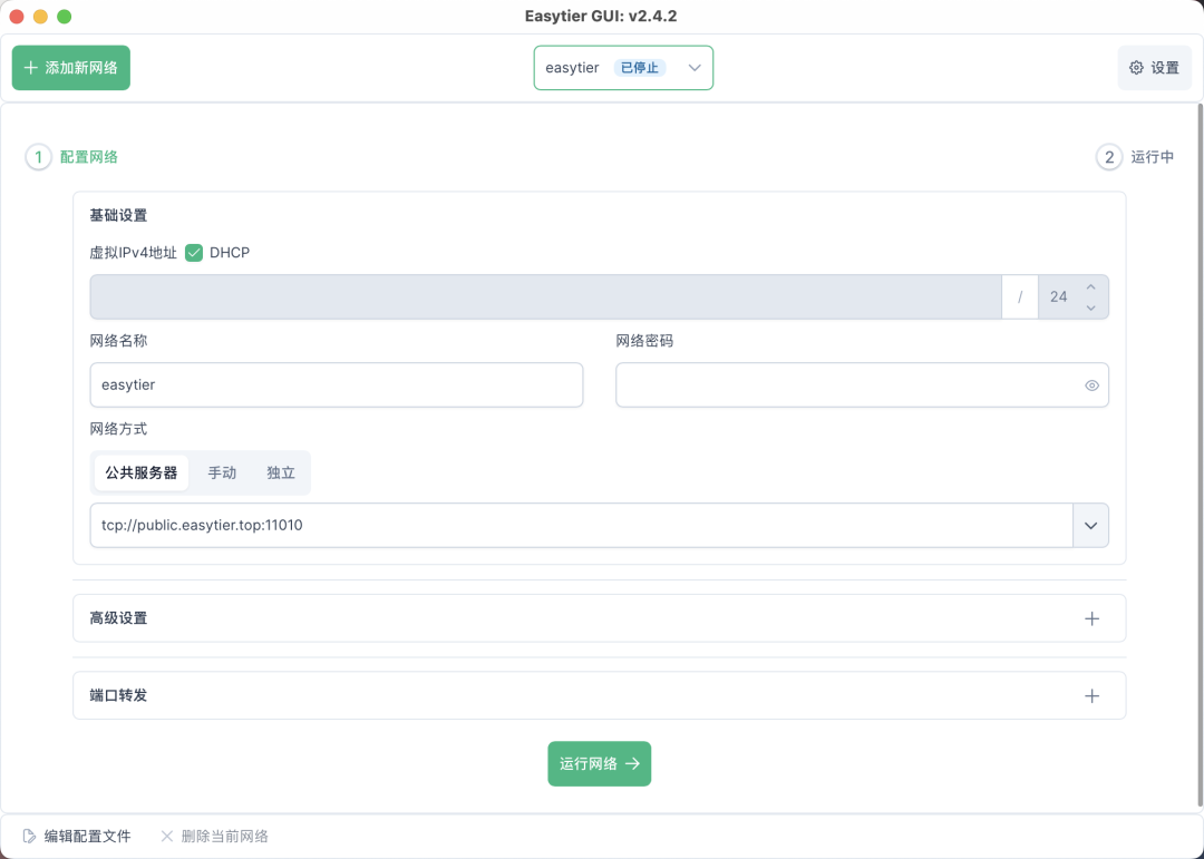 目前已部署的共享公共節(jié)點(diǎn)為tcp://public.easytier.cn:11010。