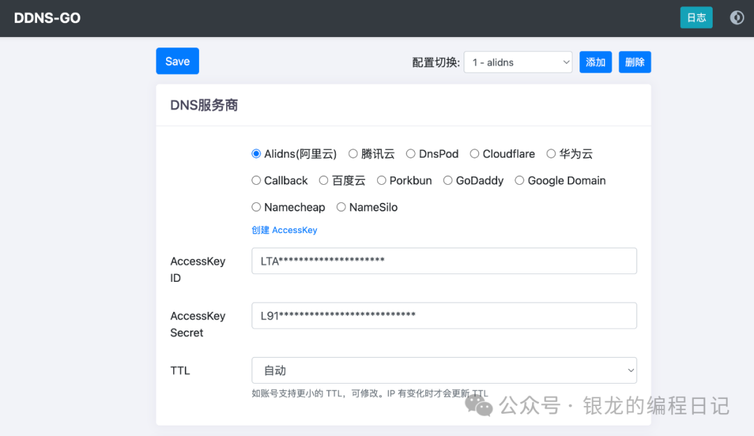 項(xiàng)目介紹DDNS-GO 是一個(gè)簡單易用的動(dòng)態(tài)域名解析系統(tǒng),支持多種主流云服務(wù)商,如阿里云、騰訊云、Dnspod、Cloudflare 等,能夠自動(dòng)獲取公網(wǎng) IPv4 或 IPv6 地址,并解析到對應(yīng)的域名服務(wù),適用于個(gè)人和小型團(tuán)隊(duì)的網(wǎng)絡(luò)服務(wù)管理。 項(xiàng)目架構(gòu)后端:Go 語言編寫,支持多種云服務(wù)商 項(xiàng)目功能? 自動(dòng)獲取公網(wǎng) IPv4 和 IPv6 地址 項(xiàng)目優(yōu)勢? 跨平臺支持:適用于 Mac、Windows、Linux 系統(tǒng),支持 ARM 和 x86 架構(gòu) 適用人群? 個(gè)人開發(fā)者:管理個(gè)人網(wǎng)站或服務(wù)的域名解析 功能截圖
