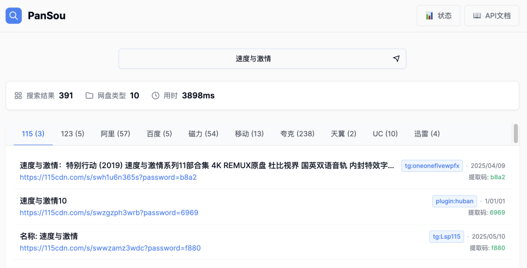 無論是影視、文檔還是其他文件,PanSou 都能通過其高效的搜索機制,為用戶提供精準的結果。