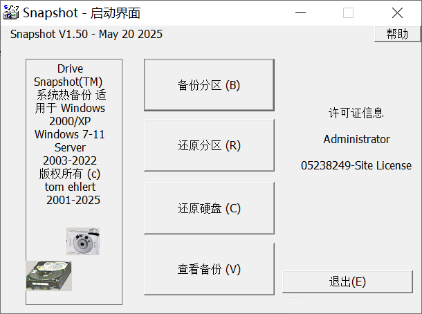 [點晴永久免費OA]Snapshot:一款功能強大的磁盤備份還原軟件v1.50.0.1744中文綠色便攜版