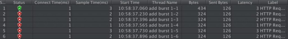 使用單個(gè)IP在10ms內(nèi)發(fā)并發(fā)送了6個(gè)請(qǐng)求,只有1個(gè)成功,剩下的5個(gè)都被拒絕。我們?cè)O(shè)置的速度是2r/s,為什么只有1個(gè)成功呢,是不是Nginx限制錯(cuò)了?當(dāng)然不是,是因?yàn)镹ginx的限流統(tǒng)計(jì)是基于毫秒的,我們?cè)O(shè)置的速度是2r/s,轉(zhuǎn)換一下就是500ms內(nèi)單個(gè)IP只允許通過1個(gè)請(qǐng)求,從501ms開始才允許通過第二個(gè)請(qǐng)求。 我們看到,我們短時(shí)間內(nèi)發(fā)送了大量請(qǐng)求,Nginx按照毫秒級(jí)精度統(tǒng)計(jì),超出限制的請(qǐng)求直接拒絕。這在實(shí)際場(chǎng)景中未免過于苛刻,真實(shí)網(wǎng)絡(luò)環(huán)境中請(qǐng)求到來不是勻速的,很可能有請(qǐng)求“突發(fā)”的情況,也就是“一股子一股子”的。Nginx考慮到了這種情況,可以通過burst關(guān)鍵字開啟對(duì)突發(fā)請(qǐng)求的緩存處理,而不是直接拒絕。 我們加入了burst=4,意思是每個(gè)key(此處是每個(gè)IP)最多允許4個(gè)突發(fā)請(qǐng)求的到來。如果單個(gè)IP在10ms內(nèi)發(fā)送6個(gè)請(qǐng)求,結(jié)果會(huì)怎樣呢?