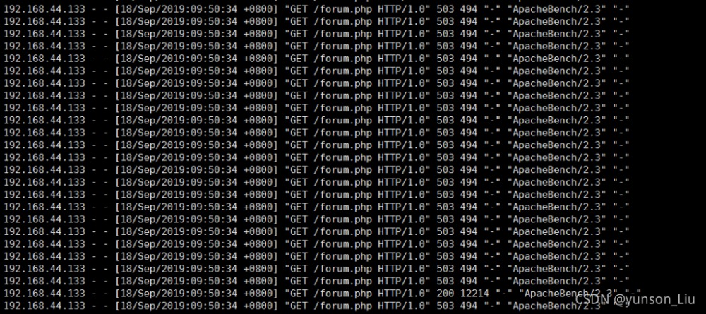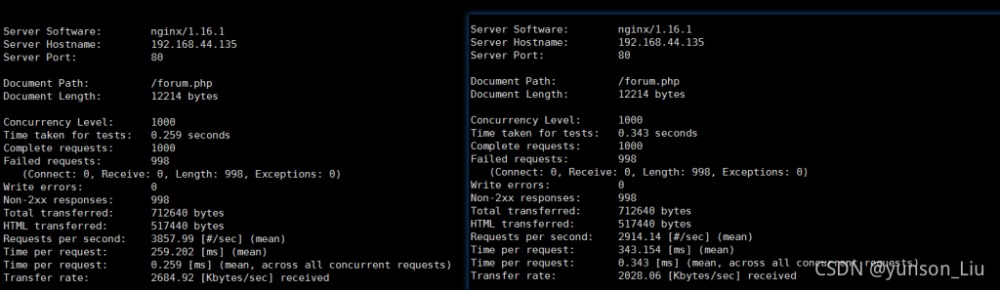壓測(cè)前后的對(duì)比,這里是壓測(cè)工具是ab壓測(cè)工具,具體用法看這篇文章