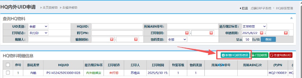 ? 進(jìn)入界面后,點(diǎn)擊“新增HQ標(biāo)簽信息”按鈕