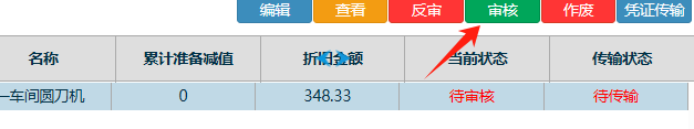 點一條折舊單后,再點擊審核按鈕 如下圖: