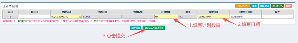 5.選好物料后,填寫計劃數量和日期,最后點擊提交。 ![]() ? 點晴模切ERP更多信息:http://moqie.clicksun.cn,聯(lián)系電話:4001861886 該文章在 2025/10/14 17:02:59 編輯過 |