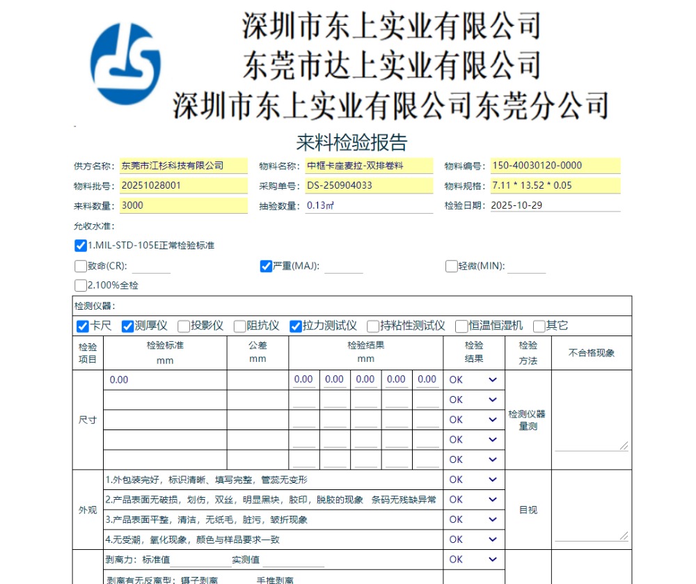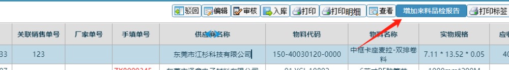 點(diǎn)晴模切ERP-新增來(lái)料品檢報(bào)告-操作步驟