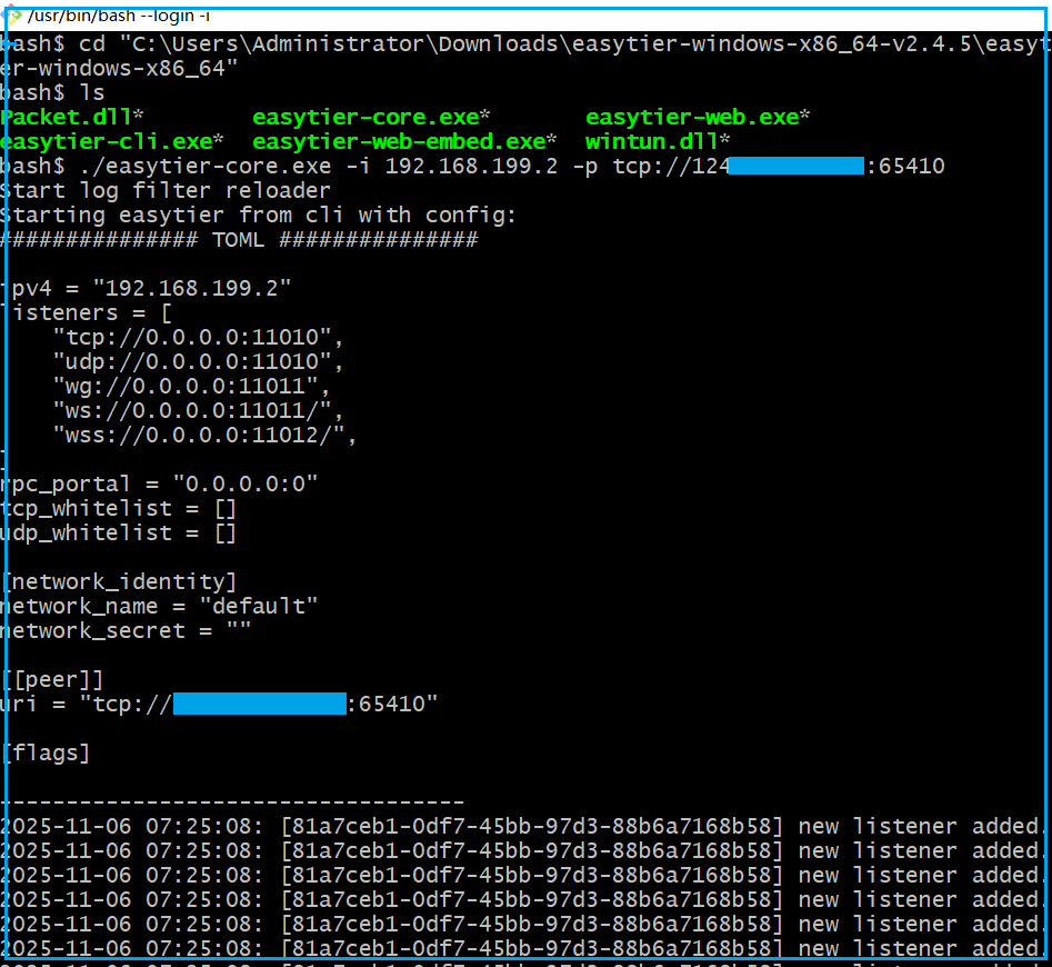 ?./easytier-core.exe -i 192.168.199.2 -p tcp://<server-ip>:65410