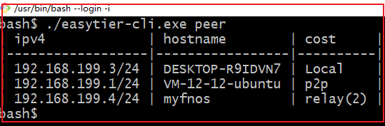 組網(wǎng)成功后,局域網(wǎng)中的IP(192.168.199.0/24)是可以互訪的。比如在第二個成員上 ping 原始節(jié)點:可以 ping 通,代表 P2P 網(wǎng)絡(luò)建立,后續(xù)就可以通過組網(wǎng)的局域網(wǎng)IP進(jìn)行內(nèi)網(wǎng)通訊了。使用 easytier 將家里的設(shè)備比如飛牛NAS和辦公室的電腦組成一個P2P網(wǎng)絡(luò),方便在家辦公或遠(yuǎn)程控制家里的設(shè)備。與 frp 相比,frp 是端口級的代理,easytier 把整個網(wǎng)段都搞通了,支持 ping 以及直接IP訪問不需要定義端口轉(zhuǎn)發(fā)。組網(wǎng)成功后可以通過 easytier-cli 工具查看局域網(wǎng)內(nèi)的節(jié)點信息:以飛牛NAS為例,組網(wǎng)成功后就可以通過組網(wǎng)IP進(jìn)行訪問了:因為 easytier 是去中心化的,沒有服務(wù)器和客戶端的區(qū)分。只要一個設(shè)備能與虛擬網(wǎng)絡(luò)中的任意節(jié)點通信,它就可以加入虛擬網(wǎng)絡(luò)。如果你沒有云主機作為中間節(jié)點,可以使用公共的共享節(jié)點,組網(wǎng)成功后就不需要中間節(jié)點了,并且網(wǎng)速取決于P2P節(jié)點。當(dāng)前實驗只是組網(wǎng)成功,實際測試發(fā)現(xiàn)網(wǎng)絡(luò)效率不太高,通過飛??匆曨l有點卡。有可能是配置錯誤沒有啟用P2P功能。因為使用的是自建云節(jié)點,沒有使用公共共享節(jié)點,所以沒開認(rèn)證。在實際使用中要配合防火墻和必要的認(rèn)證措施,避免暴露在互聯(lián)網(wǎng)上。