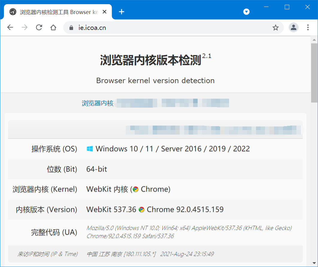 https://ie.icoa.cn 可檢測 PC 或手機(jī)瀏覽器內(nèi)核和操作系統(tǒng)類型,包括Google Chrome的WebKit、IE的Trident、ME的Edge、Firefox的Gecko/Servo,以及Windows/MacOS/Linux/iOS/Android等的判斷。
