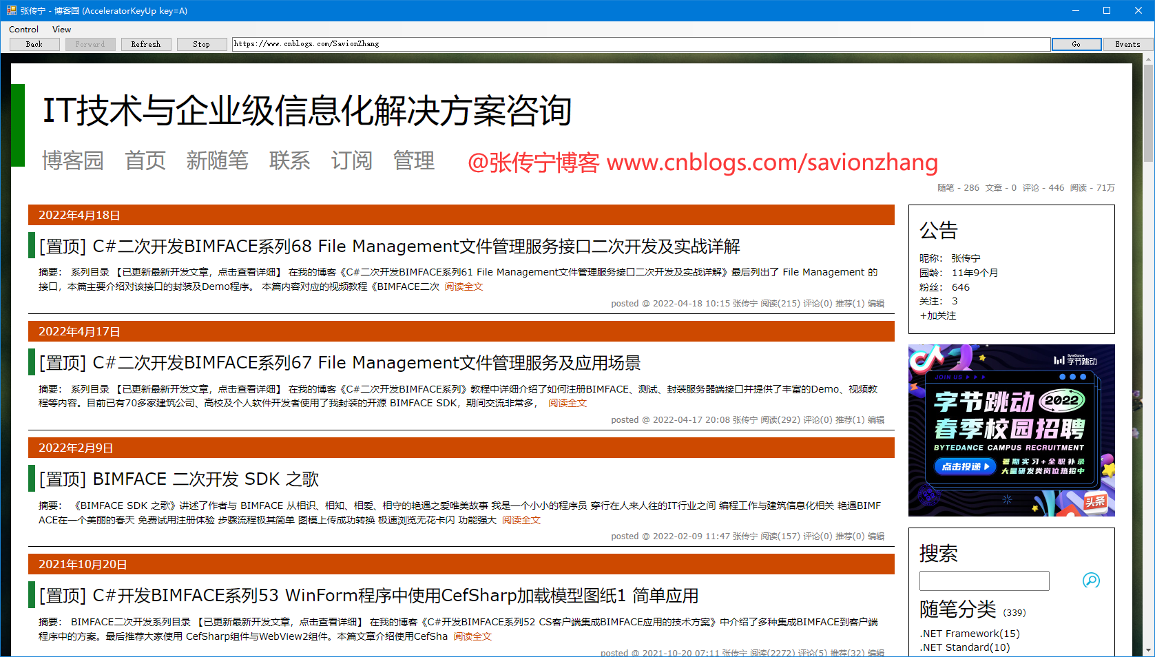 下圖是在Winform程序中使用WebView2組件加載我的博客園頁面的效果