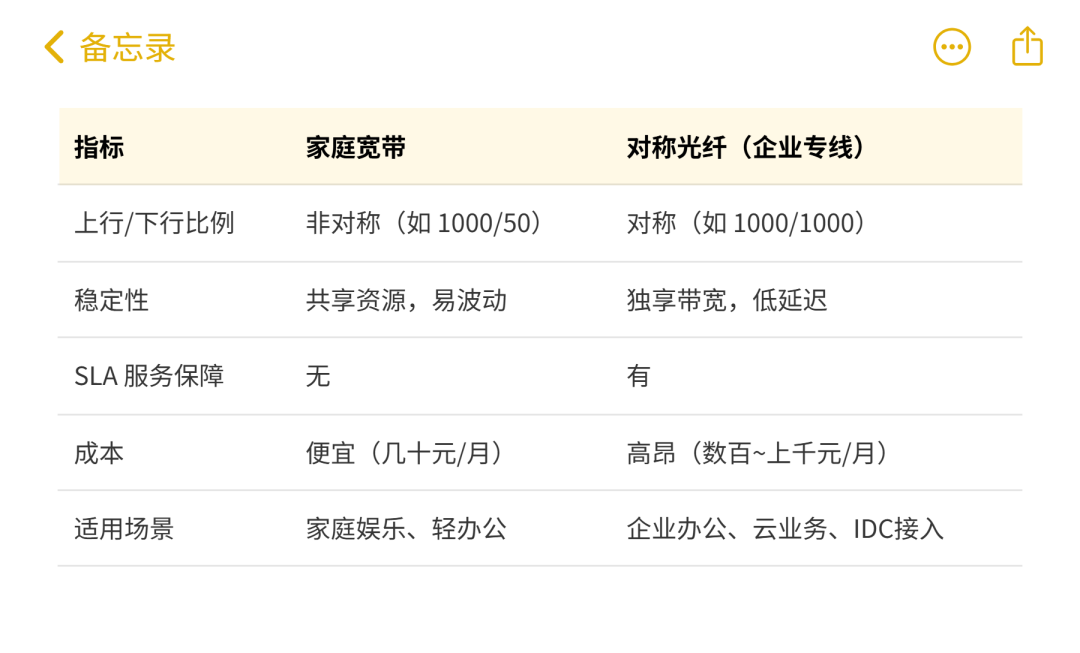 從這個對比可以看出,對稱光纖更多應(yīng)用于企業(yè)和高端用戶。 但隨著 XGS-PON 普及,一些城市的家庭寬帶也開始試點“上下行對稱套餐”,價格比企業(yè)專線低得多。 這意味著未來,對稱光纖將逐漸走進大眾家庭,成為云時代的基礎(chǔ)設(shè)施。 你該不該換對稱光纖?換句話說,對稱光纖并非“所有人都需要”,但對于某些人,它的價值非常高。